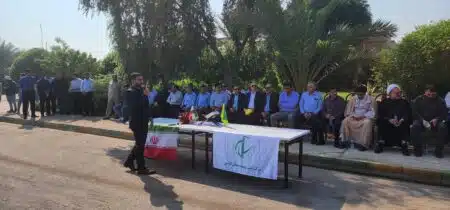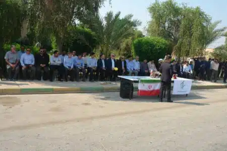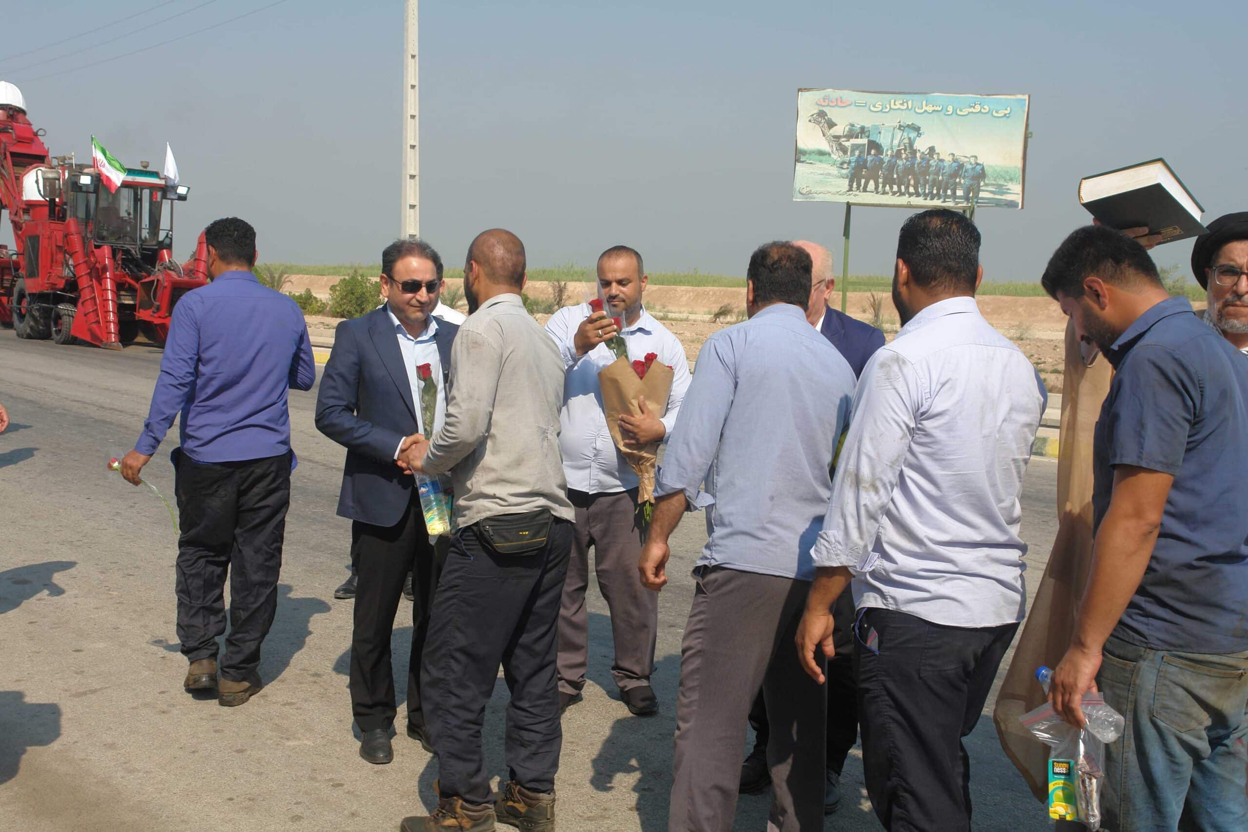 مراسم رژه با تقدیم گل به اپراتورهای دروگر نیشکر پایان یافت .