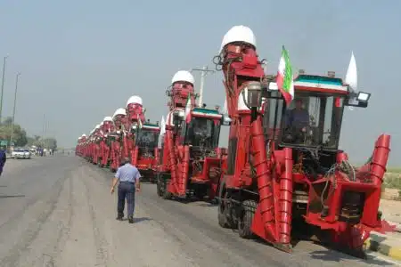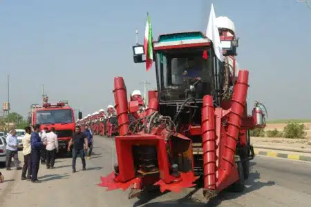مانور باشکوه ماشین آلات برداشت نیشکر کشت و صنعت سلمان فارسی