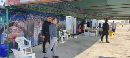 به گزارش روابط عمومی شرکت کشت و صنعت سلمان فارسی، بزرگترین موکب خدمت به زائرین اربعین حسینی(ع) در45 کیلومتری جاده آبادان اهواز منتهی به مرز بینالمللی شلمچه صبح روز سه شنبه 23 مرداد ماه با حضور مدیرعامل و جمعی از کارکنان شرکت شروع به کار نمود.