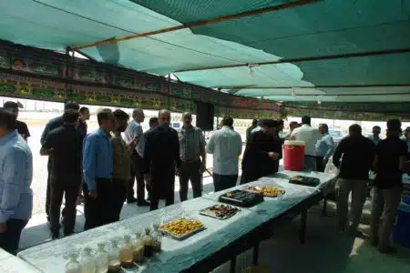 موکب شرکت توسعه نیشکر و صنایع جانبی در محل گیت شرقی کشت و صنعت سلمان فارسی و برای سومین سال متوالی با مشارکت شرکت های کشت و صنعت سلمان فارسی، حکیم فارابی، دعبل خزاعی، خمیرمایه و الکل رازی، راصد صنعت توسعه و آبان بسپارتوسعه با مدیریت و متولیگری شرکت سلمان فارسی بر پا گردیده است.