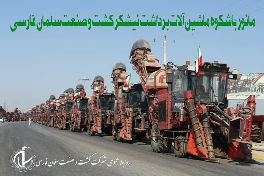 مانور باشکوه ماشین آلات برداشت نیشکر کشت و صنعت سلمان فارسی